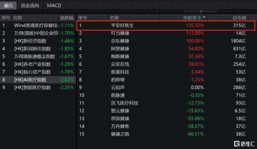而在今年风起云涌的港股市场中,有一家公司将这二者的结合演绎成了强劲的增长曲线:平安好医生(1833.HK)以超过135%的年内涨幅,成为港股AI医疗板块中引人瞩目的领跑者。
